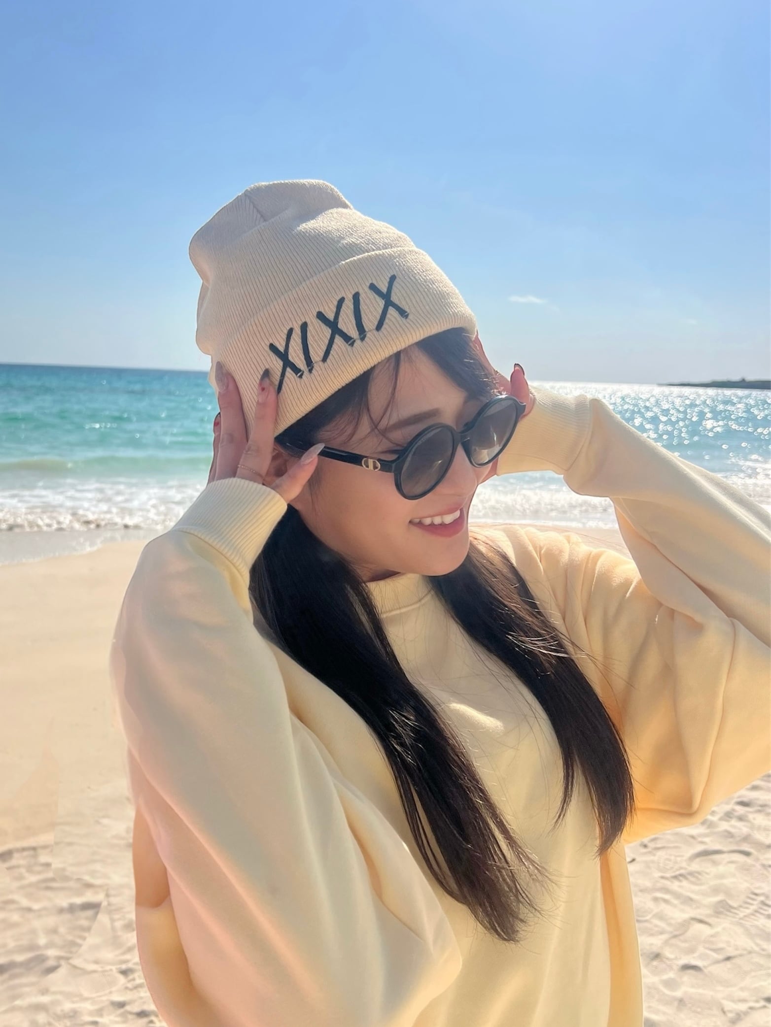 - ビーニー:暖かい素材を使用した、軽やかでフィット感のあるデザインです。ベージュカラーは、合わせやすくどんなコーディネートにもぴったり!